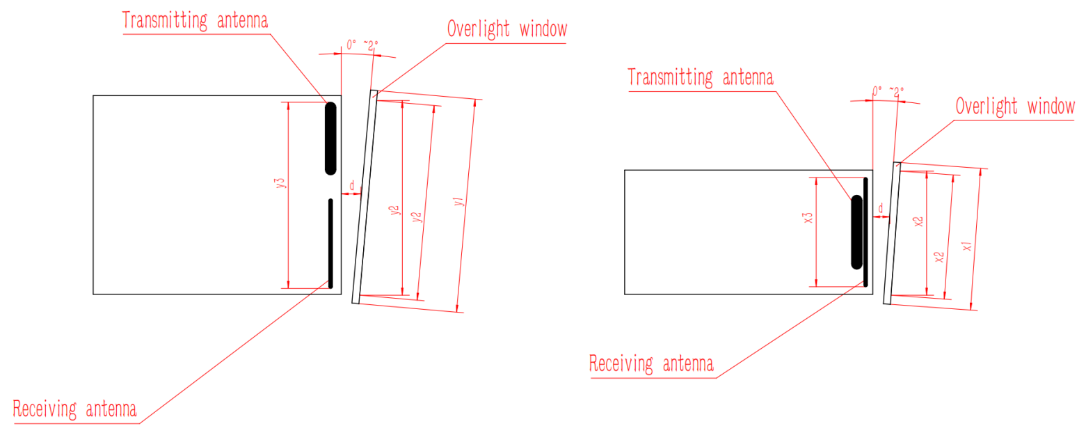 The outer diameter of the rangefinder antenna x3-the projection size of the effective aperture of the optical window x2,>1.5mm